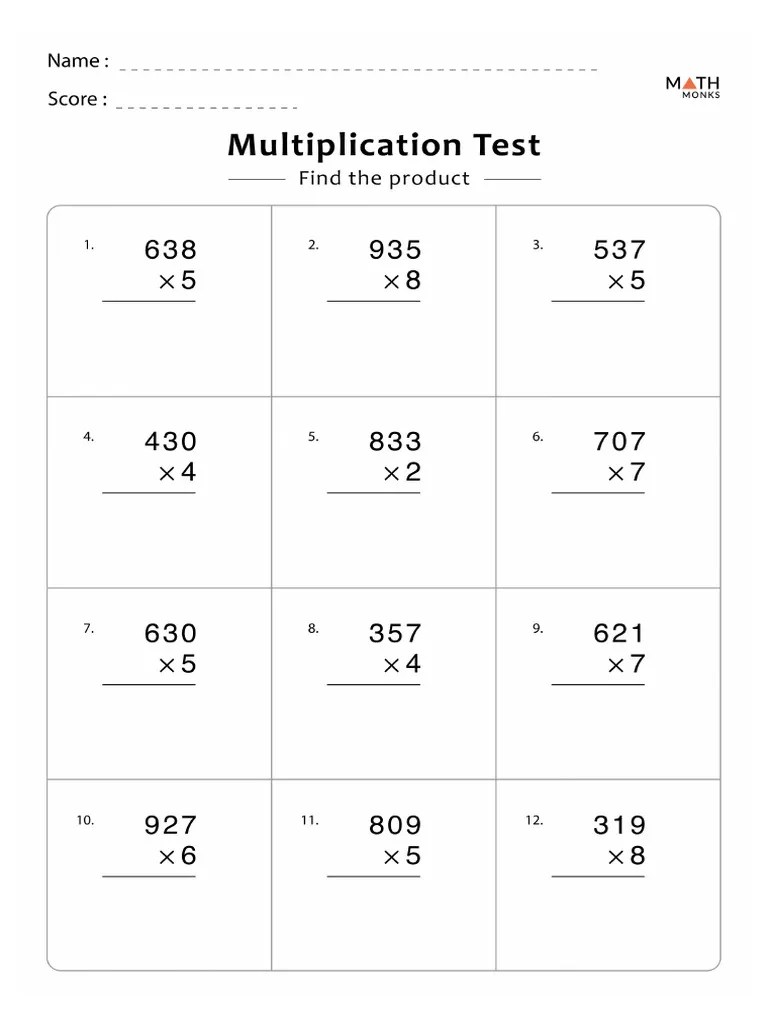 4th Grade Math Multiplication Worksheet: Practice Sheets And Exercises